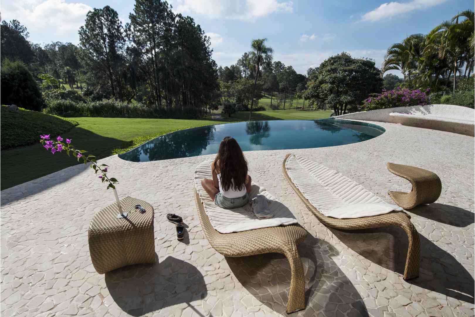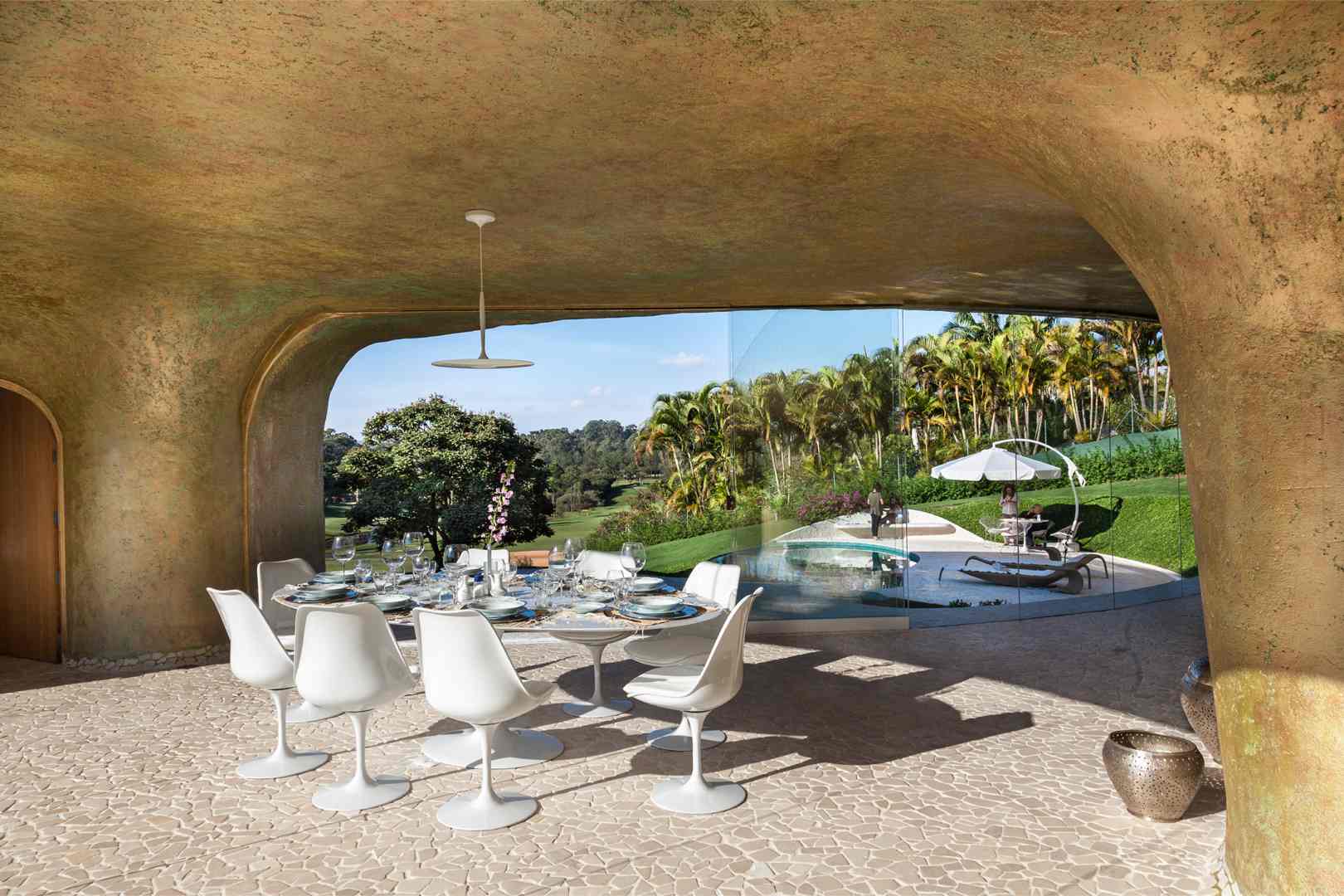 The house is located 120 kilometers from the city of Sāo Paulo, in a gated community with a golf course, surrounded by lush vegetation. The lot has northern exposure and looks over the golf course. There are construction restrictions along all four sides.