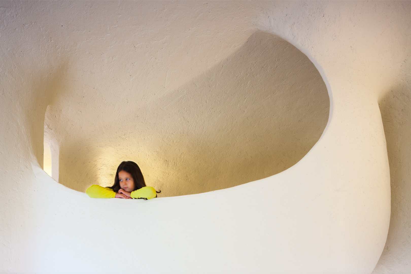 En la planta alta, que se apoya sobre los tres soportes, quedó la zona íntima con vistas hacia el norte, es decir, hacia el campo de golf.