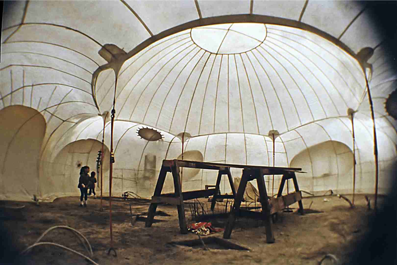 With 115 m² of surface area, the house has a central patio that articulates the surrounding spaces. The constructive system consists of a pneumatic formwork covered by a structural envelope of polyurethane mortar.