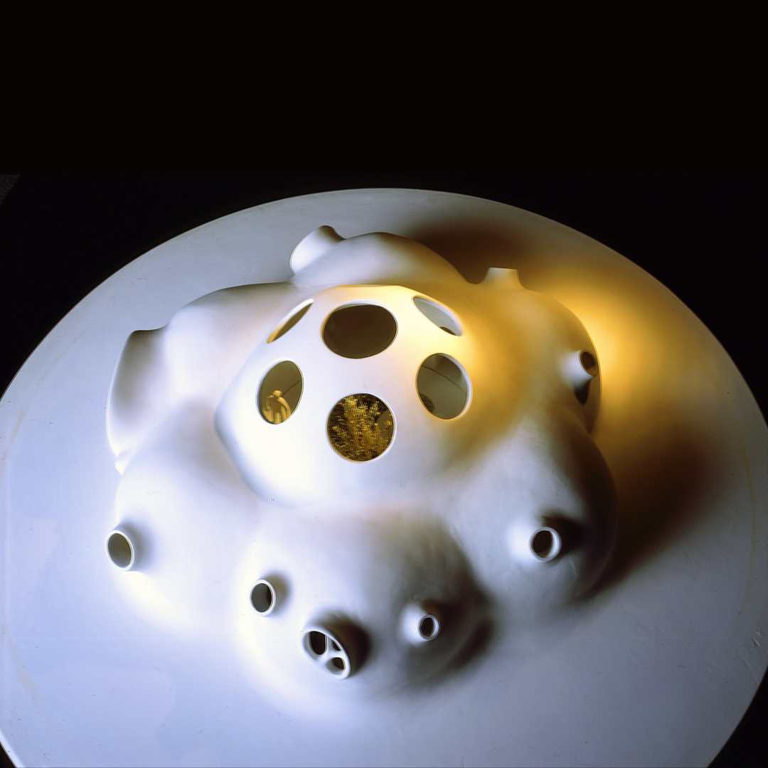 La morada con 115 m2 de superficie, se basa en el concepto de patio central al que convergen las habitaciones perimetrales. El sistema constructivo una cimbra neumática, con un sándwich estructural mortero-poliuretano