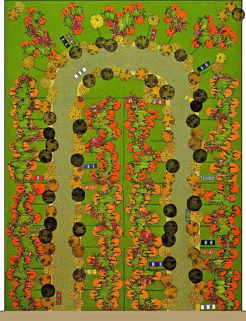 Este conjunto se diseñó con el Arq. Alejandro Sánchez de Tagle en un terreno fraccionado con lotes tipo de 7 m de ancho por 20 m de profundidad. En cada lote se ubicaron uno o dos módulos, cuya forma se asemeja a la de un cacahuate; los módulos se desfasan con el fin de quitar rigidez al conjunto.