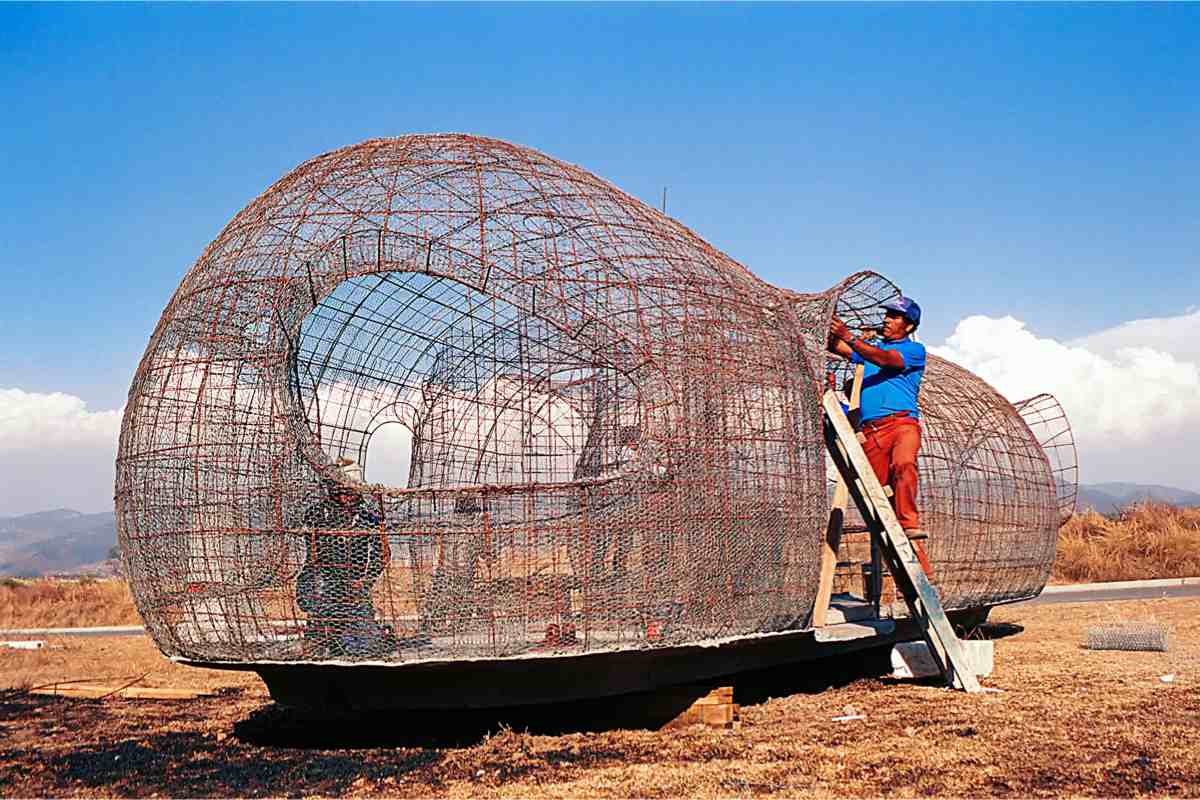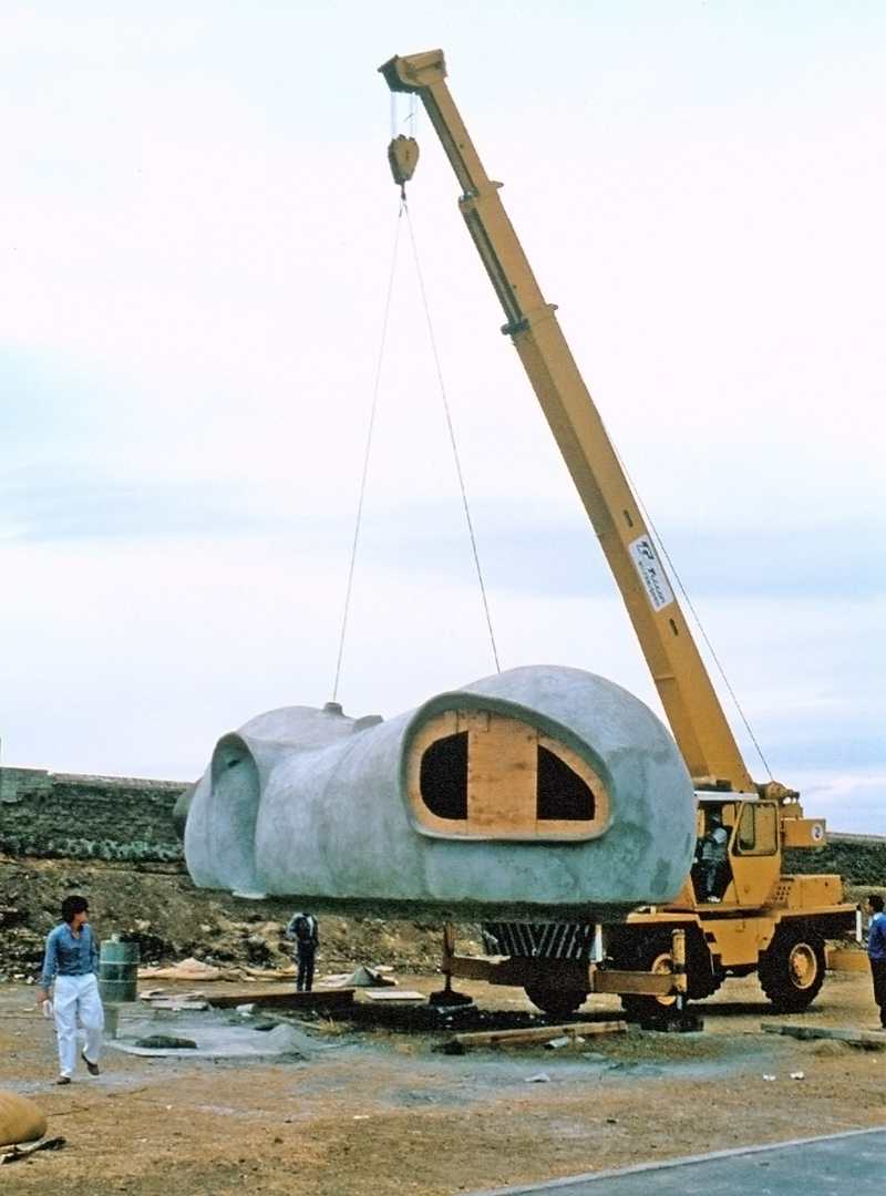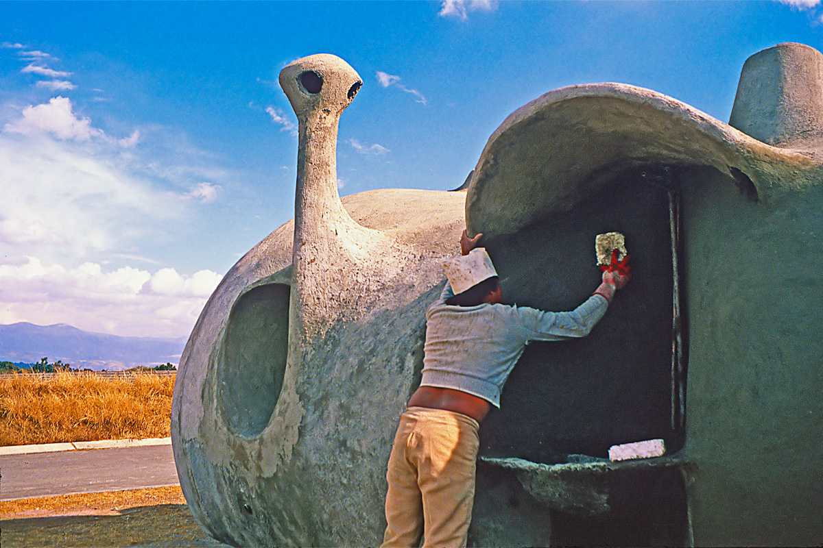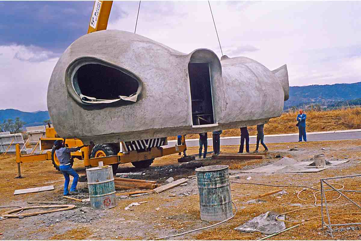 This complex was designed in collaboration with architect Alejandro Sánchez de Tagle on a site subdivided into uniform lots measuring seven by twenty meters each. One or two modules, whose shape resembles that of a peanut, were placed on each lot, in a staggered arrangement that attenuates the rigidity of the composition.