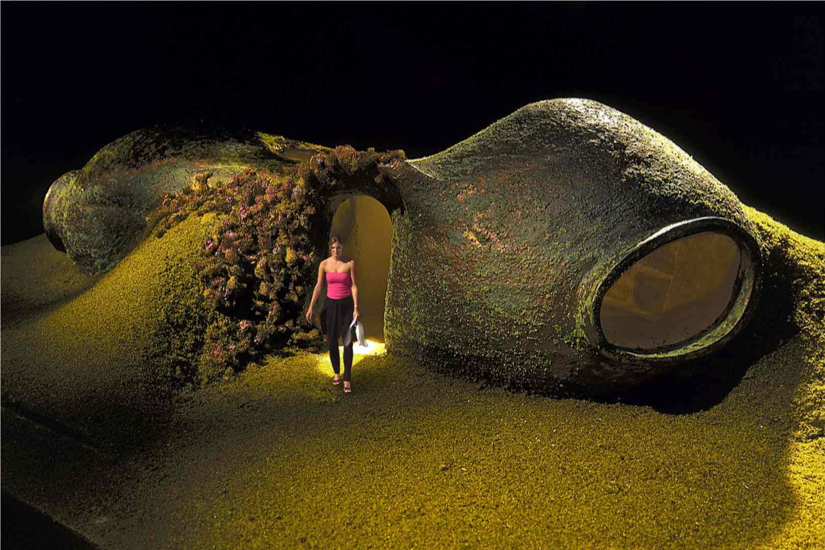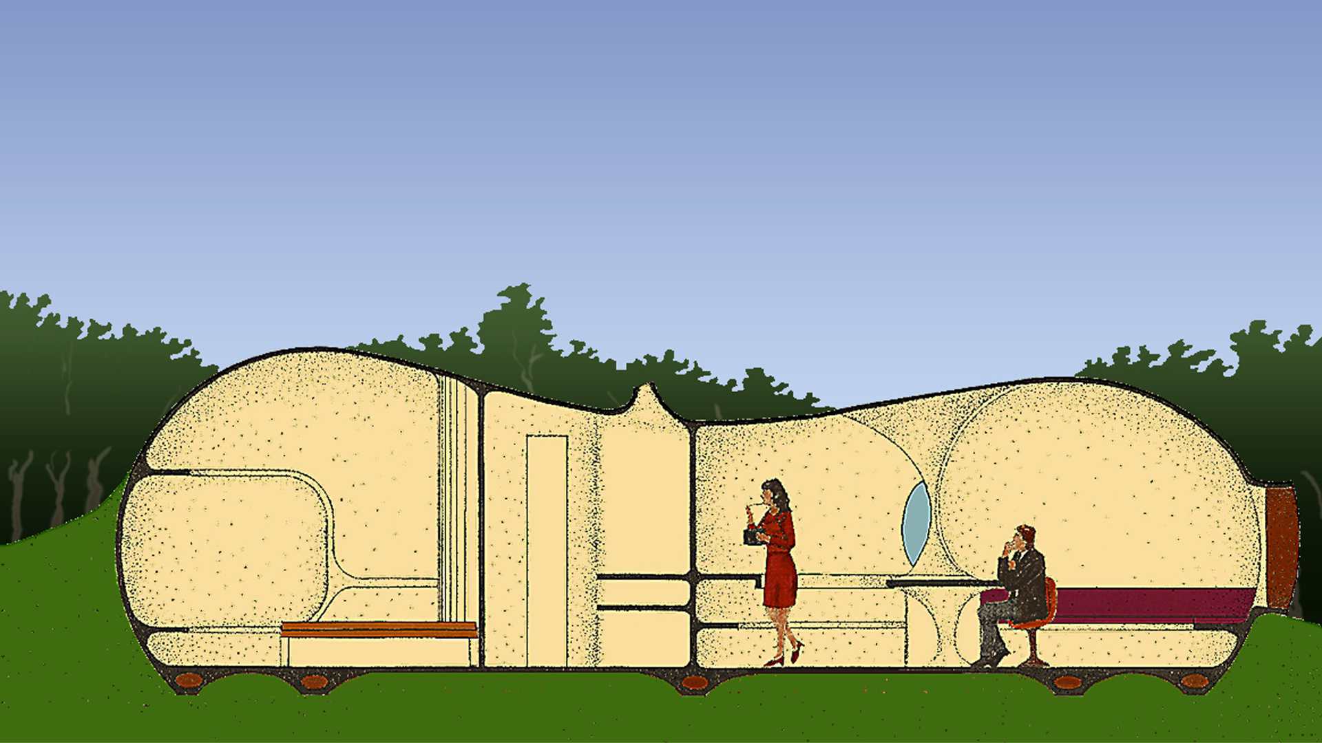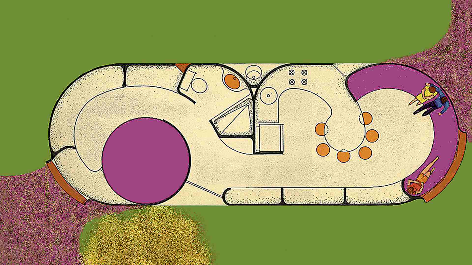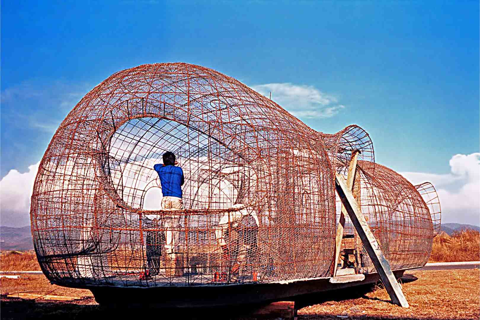 This complex was designed in collaboration with architect Alejandro Sánchez de Tagle on a site subdivided into uniform lots measuring seven by twenty meters each. One or two modules, whose shape resembles that of a peanut, were placed on each lot, in a staggered arrangement that attenuates the rigidity of the composition.