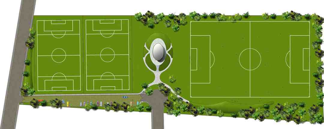 In the center of the lot is the construction that houses the Diamante Soccer Club.