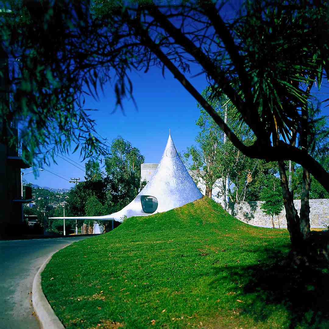 The constructive system is of ferro-cement. The soil and grass covering the bottom part of the booth, along with the water tank contained in the top part, provide both thermal and acoustical insulation.