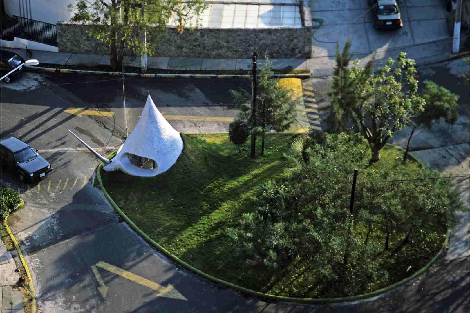 Dentro del área verde que da a un circuito cerrado se construyó esta caseta de vigilancia.
