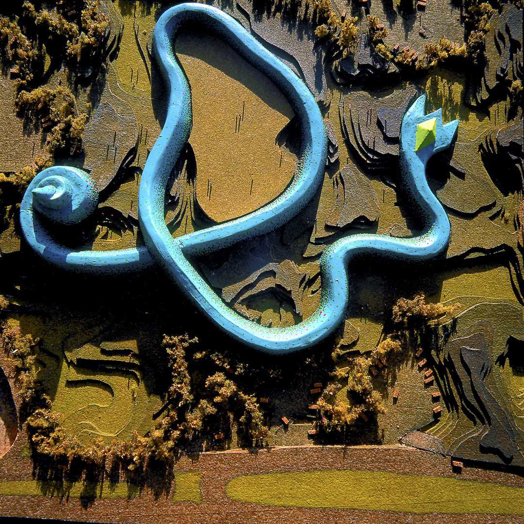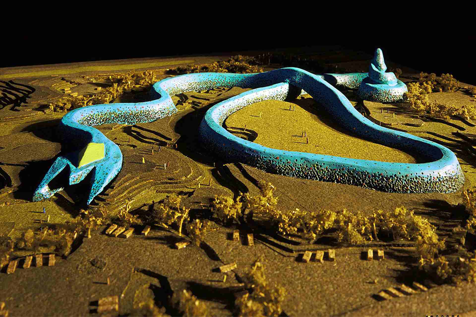 On the ground floor are the libraries, the most spacious and weightiest areas. On the second floor are the administrative areas and on the third floor the research cubicles. The garden rooftop interconnects the various institutes as well as the auditoriums and cafeteria located in the serpent’s head. There is an entrance through the serpent’s jaws. At the other end, where the tail is coiled in imitation of the Cuicuilco pyramid, is the office that coordinates the interactions of the different institutes.