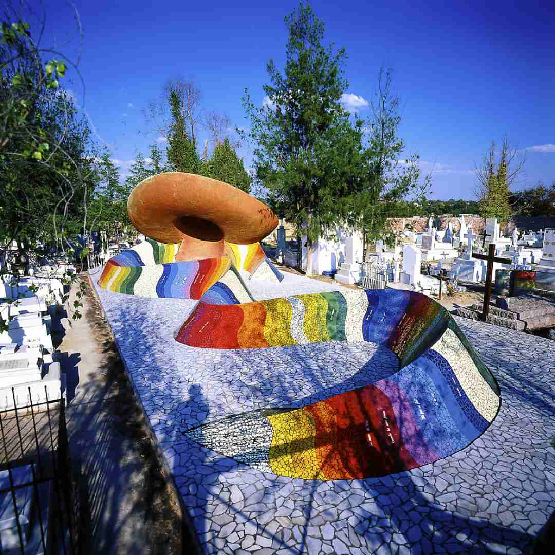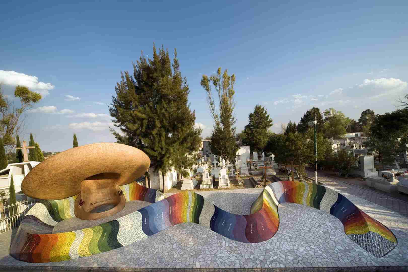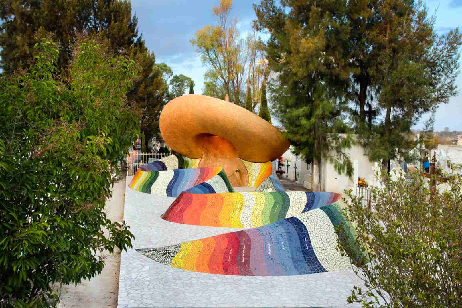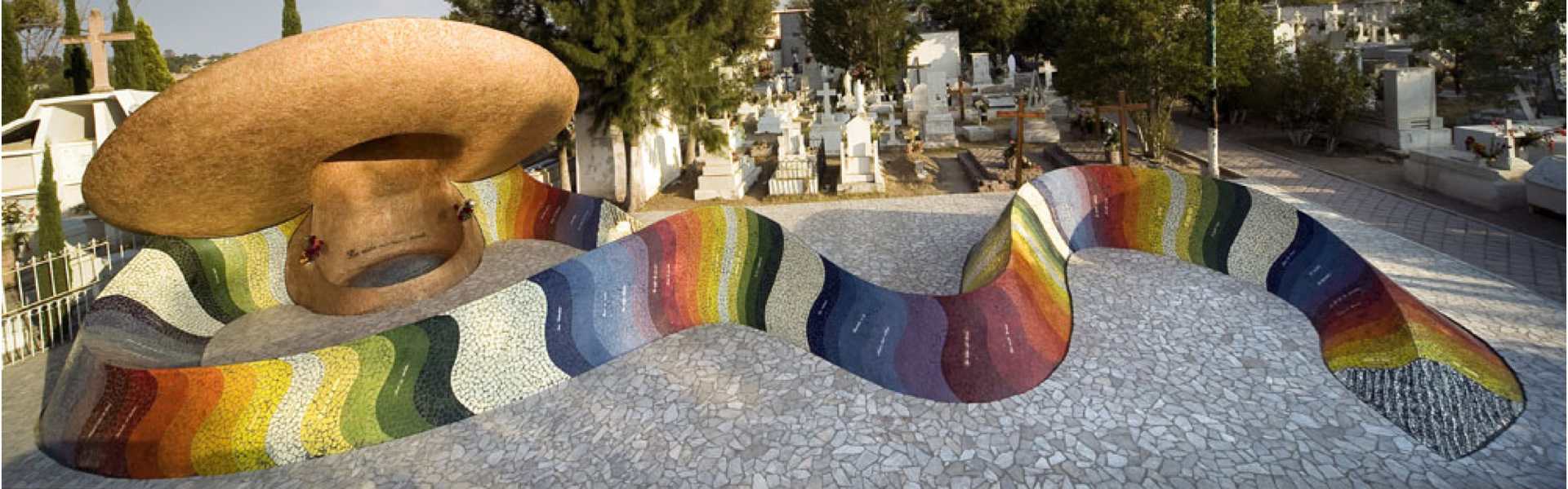 On the slopes of the sierra, at the entrance to the village of Dolores Hidalgo, is the municipal cemetery, where lie the remains of the Mexican composer José Alfredo Jiménez, who passed away on 23 November 1973. On the occasion of the 25th anniversary of his death, a shrine was designed for his resting place.