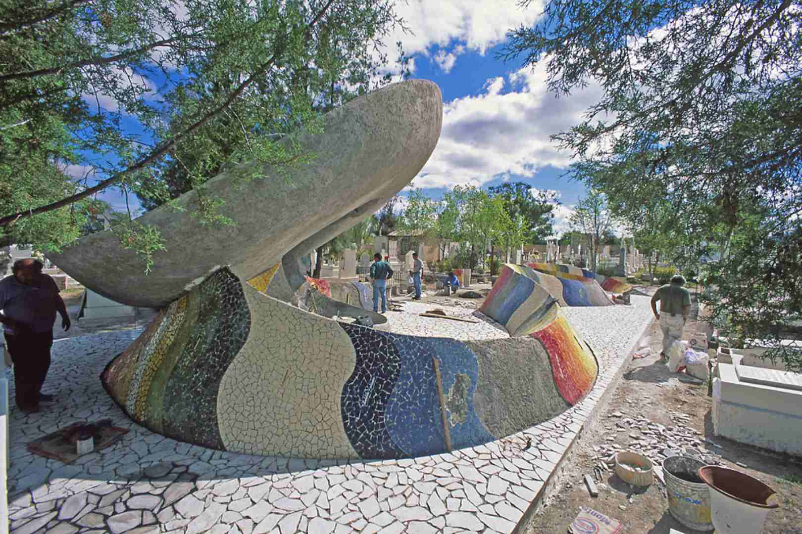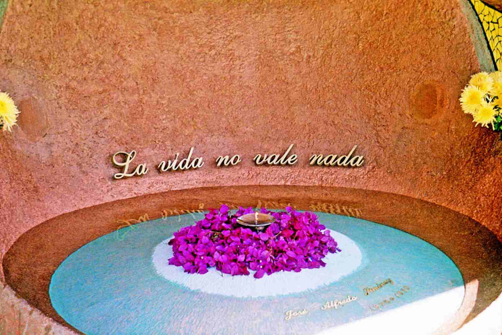 The family of the composer from Dolores decided to replace the former shrine, an enclosed glass box in what was intended to be a classical style (somewhere between Greco-Roman and Renaissance), which impeded free access by pedestrians. Given the popularity of José Alfredo Jiménez, his grave was included on the itinerary of the Route of Mexican Independence, resulting in the daily arrival of several vanloads of tourists. The new shrine allows visitors to move around more freely and also seeks to be more characteristic, more Mexican, more in accord with the personality of the composer.