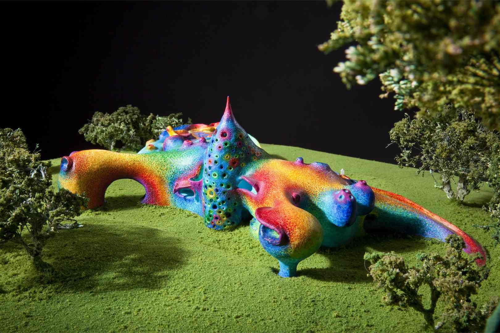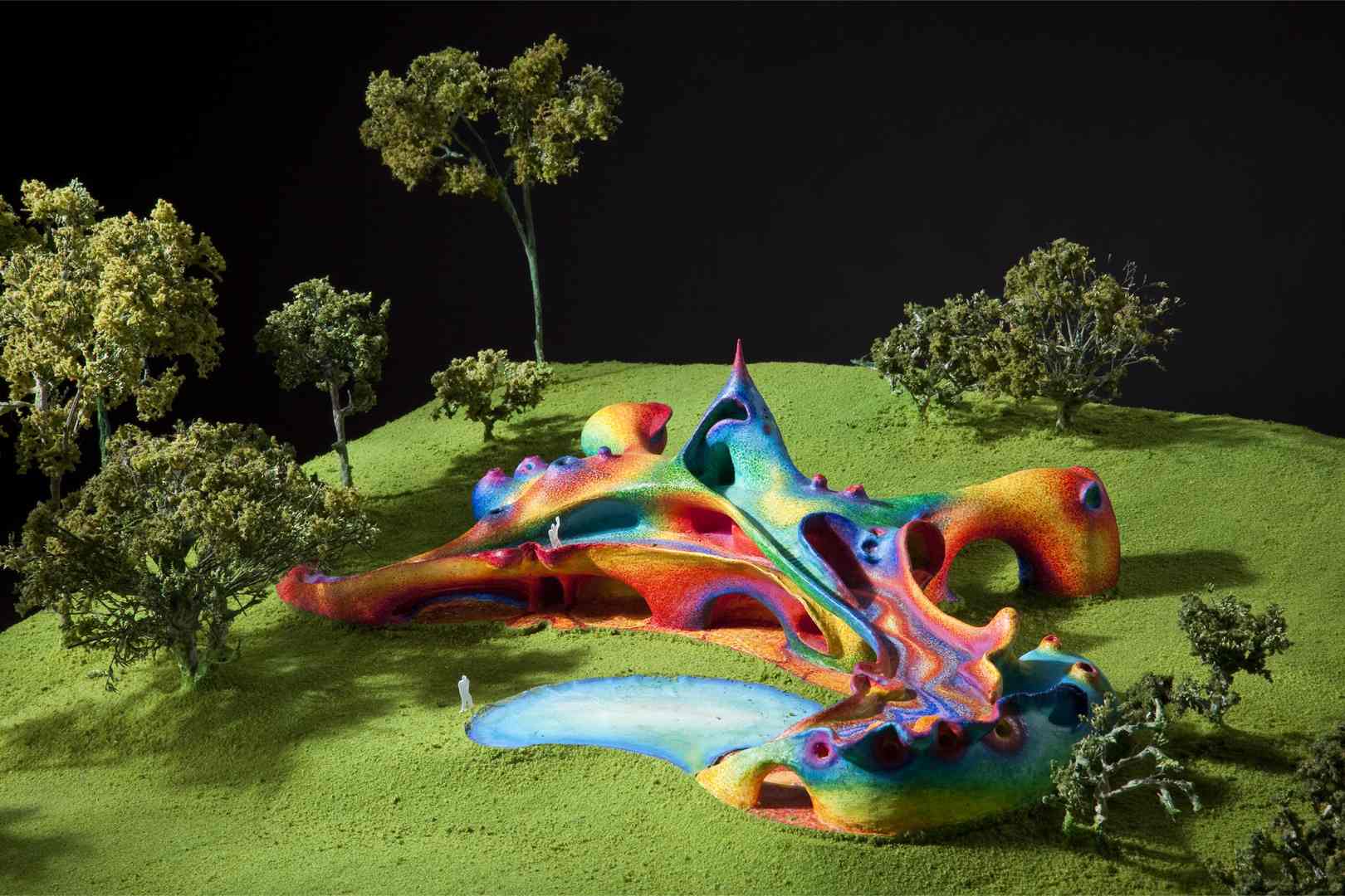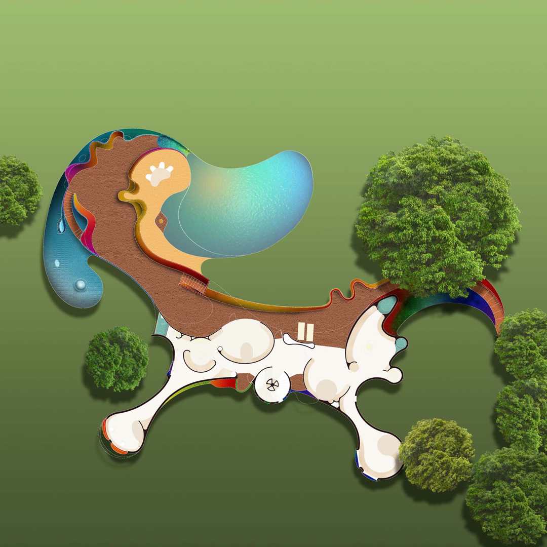 From the beginning, we thought the program demanded a house in the form of a large, colorful sculpture, decorated with glazed ceramic tiles and endowed with cross-ventilation, niches for sculptures, and large open-air spaces.