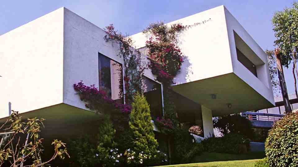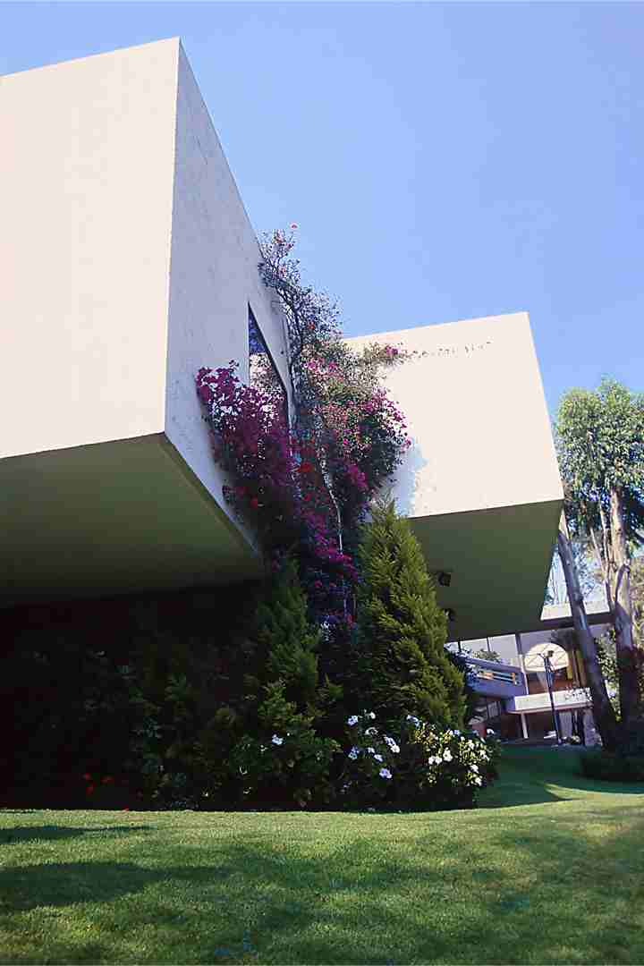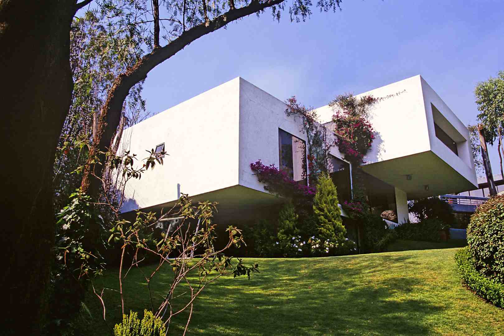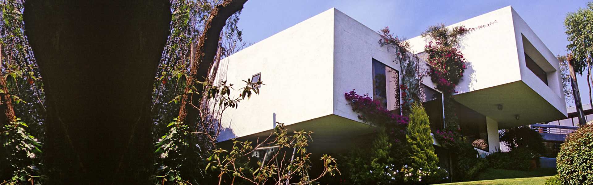 En la de Saratoga se aprovecharon las vistas cruzadas hacia el jardín común así como la orientación al sur y se adaptó la casa a las curvas de nivel del terreno. La estructura en la fachada sur es de concreto aparente martelinado.