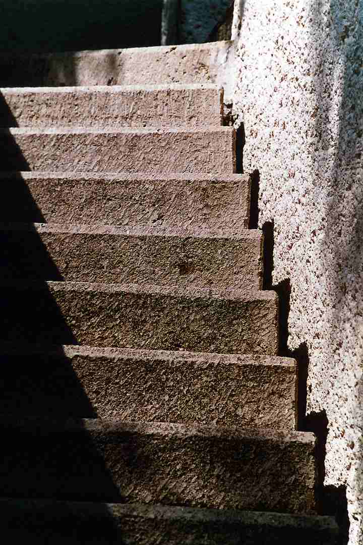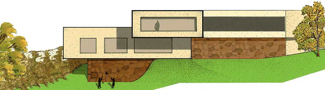 The structure on the southern façade is of exposed bush-hammered concrete.