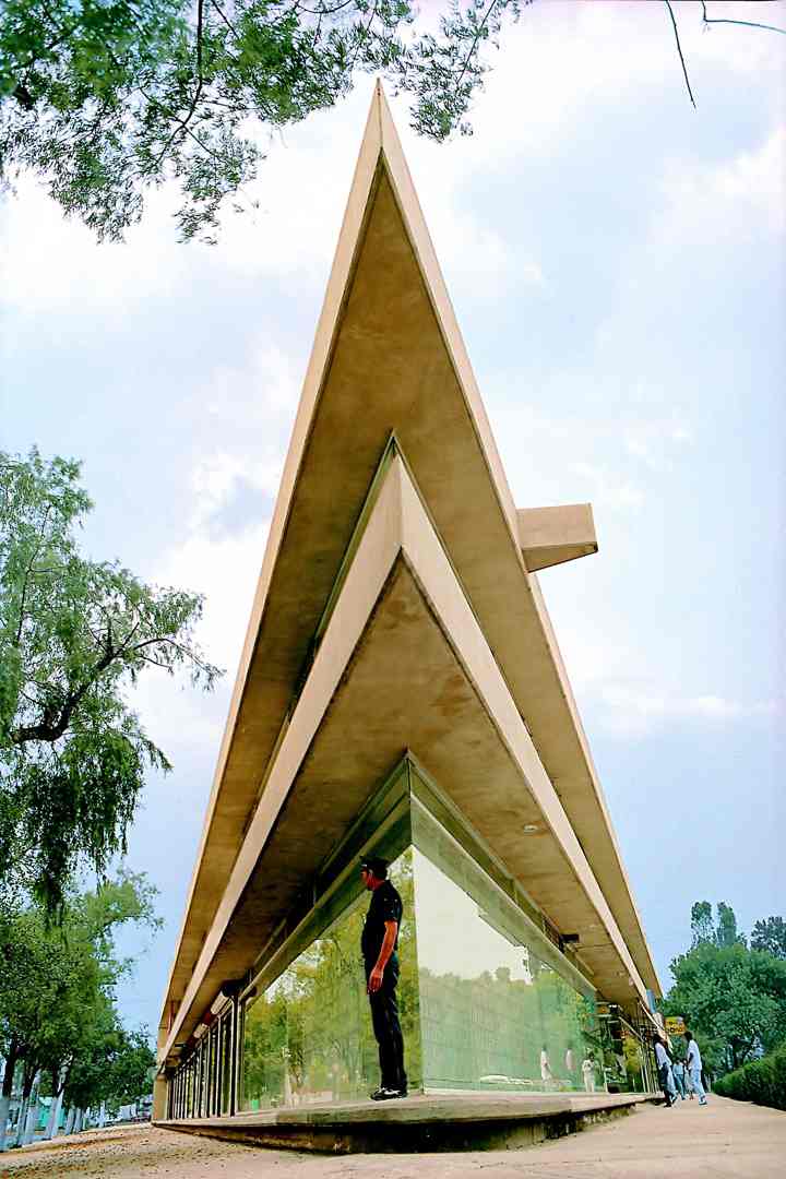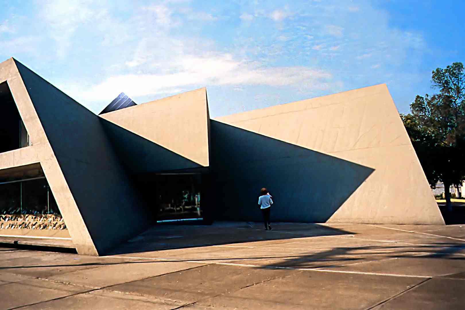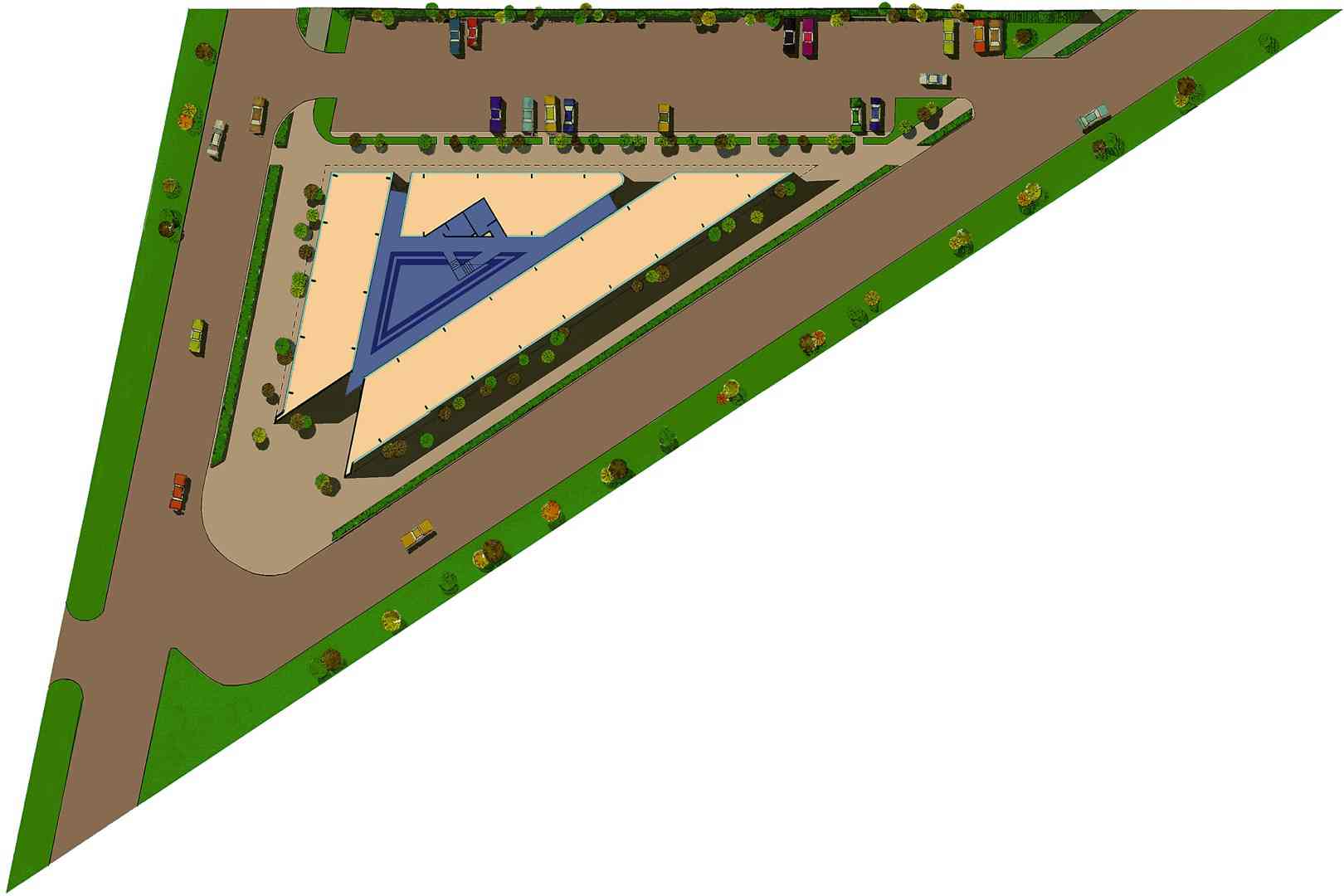 Triángulos remetidos que se van cerrando hacia el centro, producto de la figura triangular del terreno el cual colinda con 2 avenidas que se cruzan con uno de sus vértices.