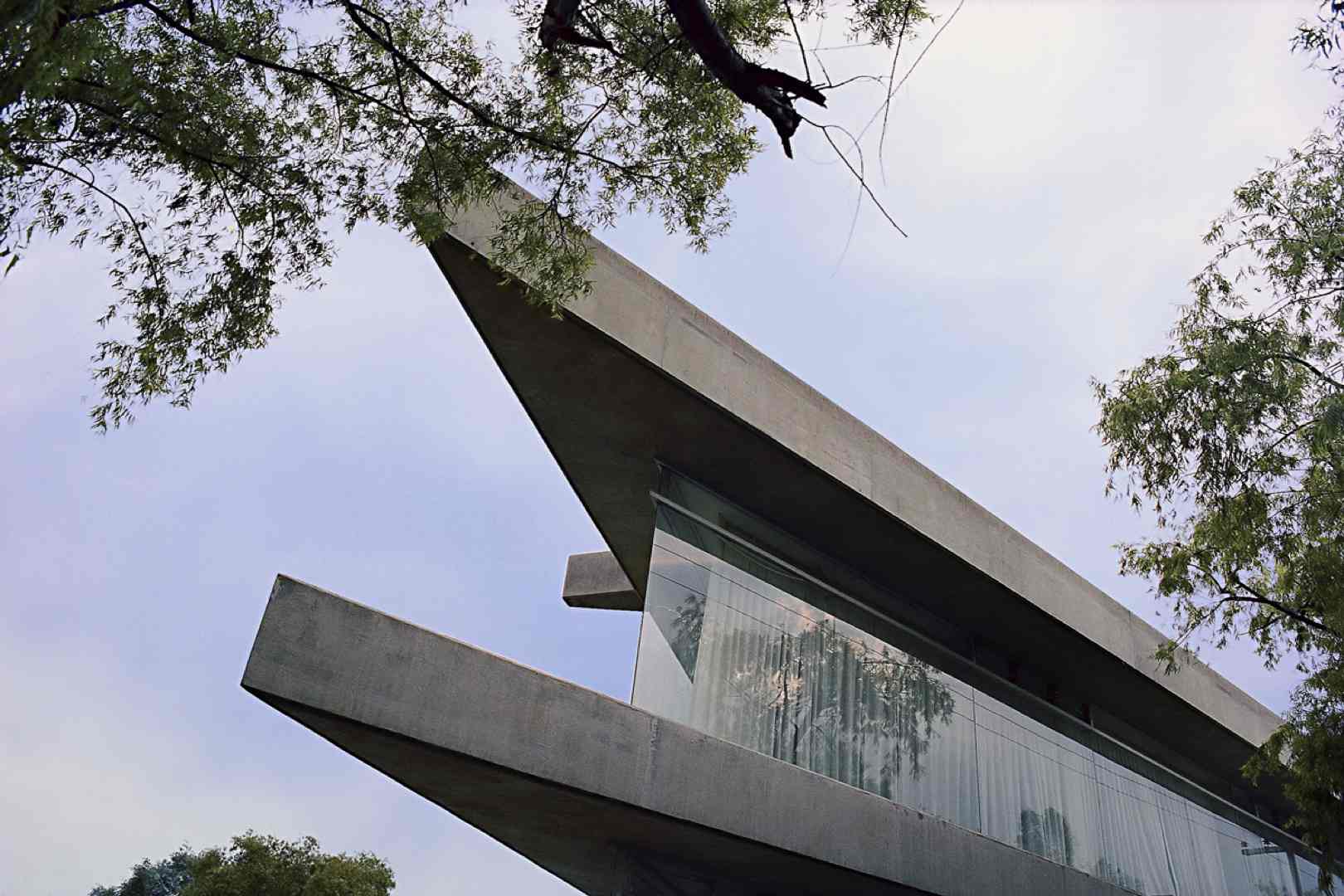 En éste vértice se localiza el acceso principal que conduce al vestíbulo triangular de doble altura, iluminado por un domo piramidal.